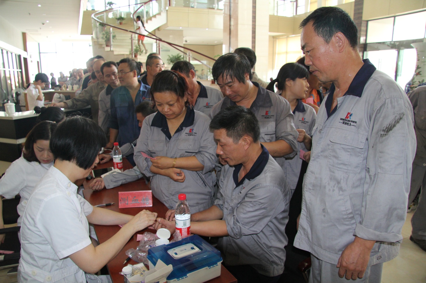 (醫(yī)護(hù)人員為員工測血壓、血糖)