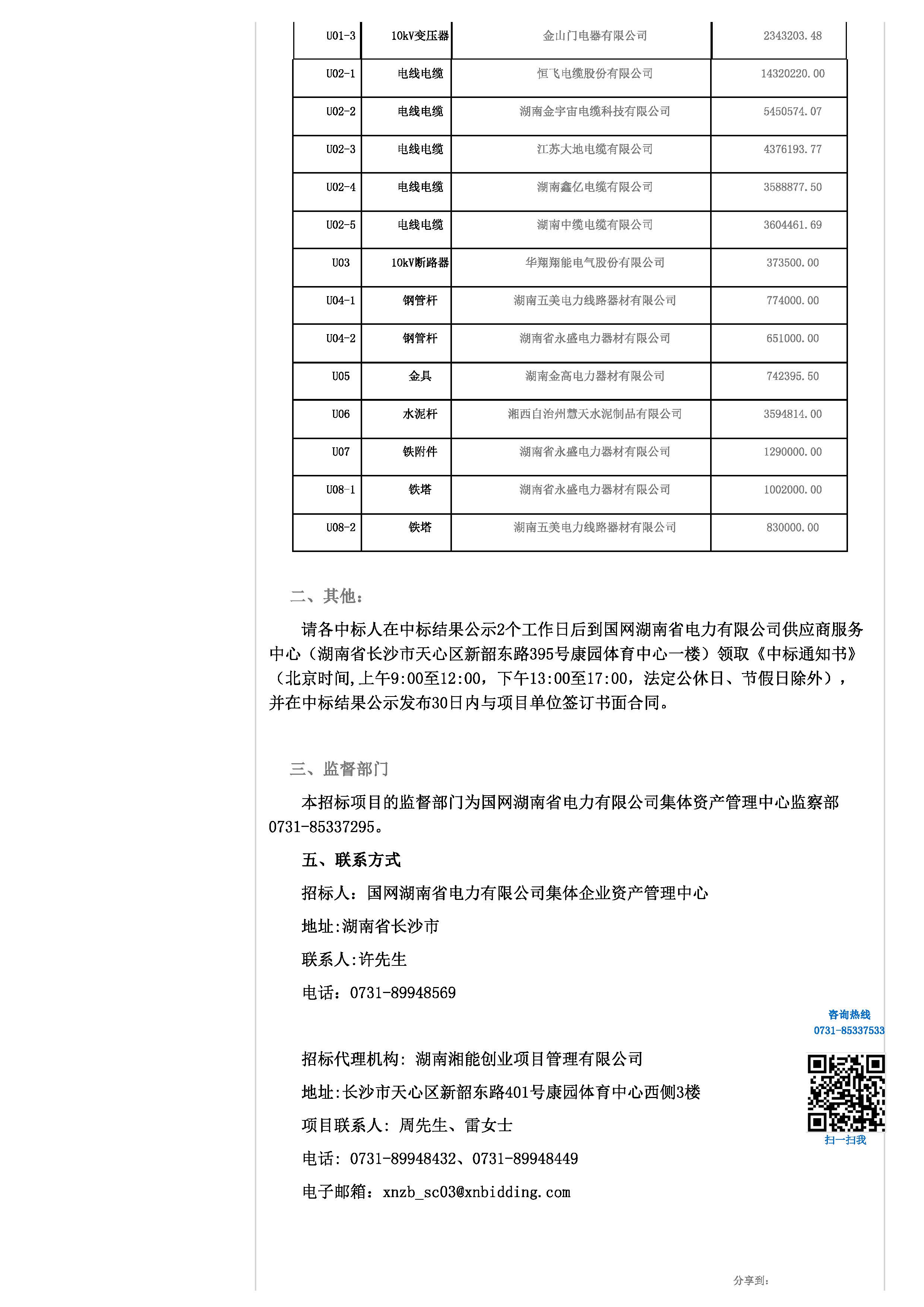 1、國網(wǎng)湖南省電力有限公司2018年集體企業(yè)物資協(xié)議庫存項目,中標(biāo)金額:16882781.52元。